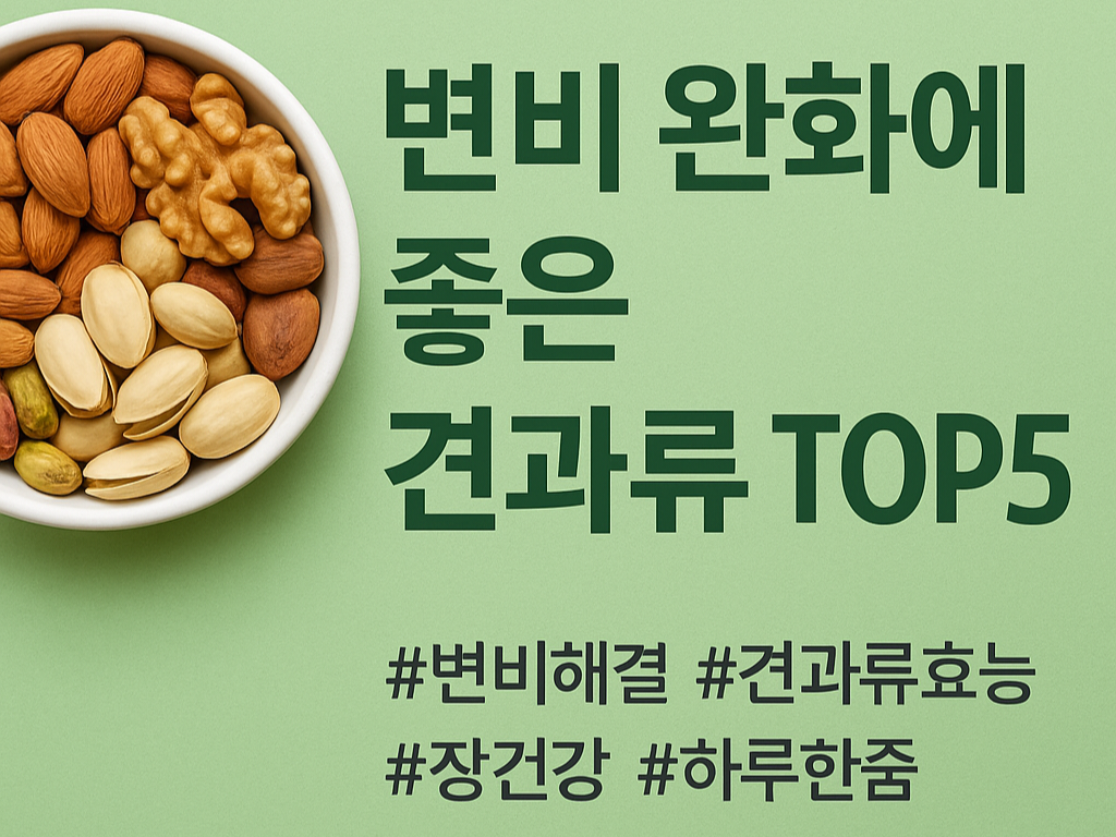 요약: 견과류는 식이섬유와 건강한 지방이 풍부해 장 운동을 돕고 변비 완화에 효과적입니다. 하루 한 줌(20~30g)을 물과 함께 드시는 게 좋아요.