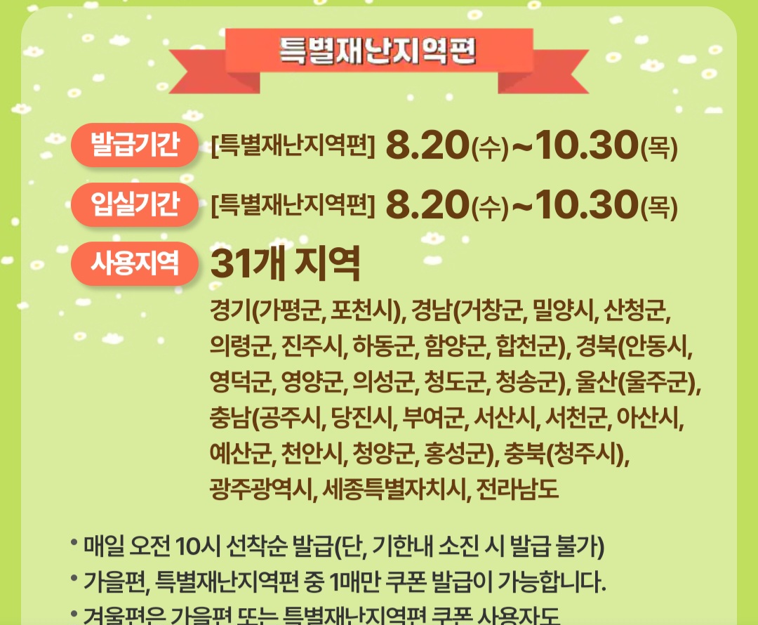 강릉은 이번 특별재난지역에 포함되어 있어 최대 5만 원 할인이 적용됩니다.