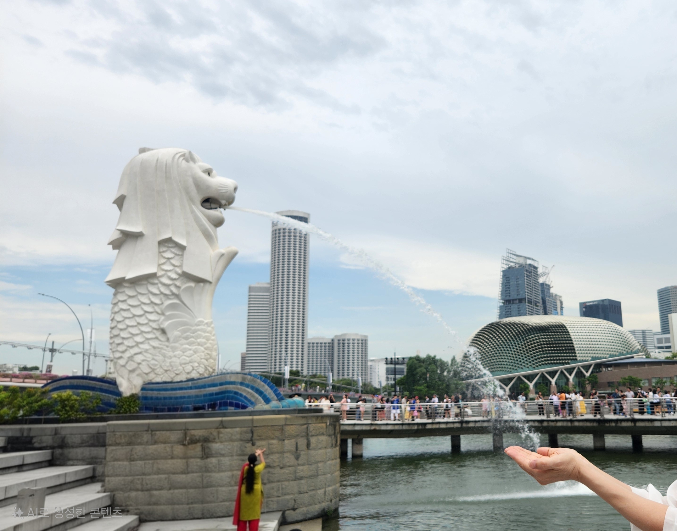 ✨ 머라이언 분수에 입으로 물 받는 포즈 사진 ✨