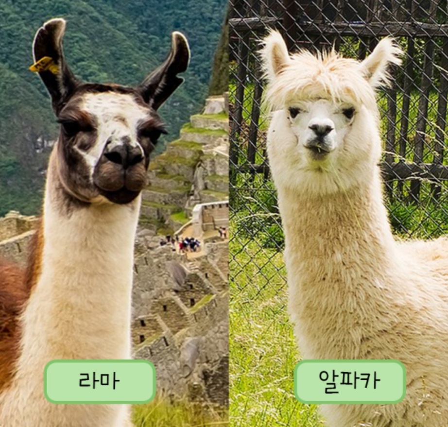 👉 사진으로 보면 알파카는 귀여운 마스코트 같고, 라마는 늠름한 산악 전사 같은 느낌을 줍니다.