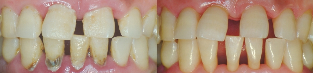 셋째, 치주질환입니다. 치석과 세균이 잇몸 속에 쌓이면 잇몸에 염증이 생기고 점차 잇몸 뼈까지 손상됩니다. 이 과정에서 잇몸이 붓고 피가 나다가 결국 퇴축이 심해지게 됩니다.