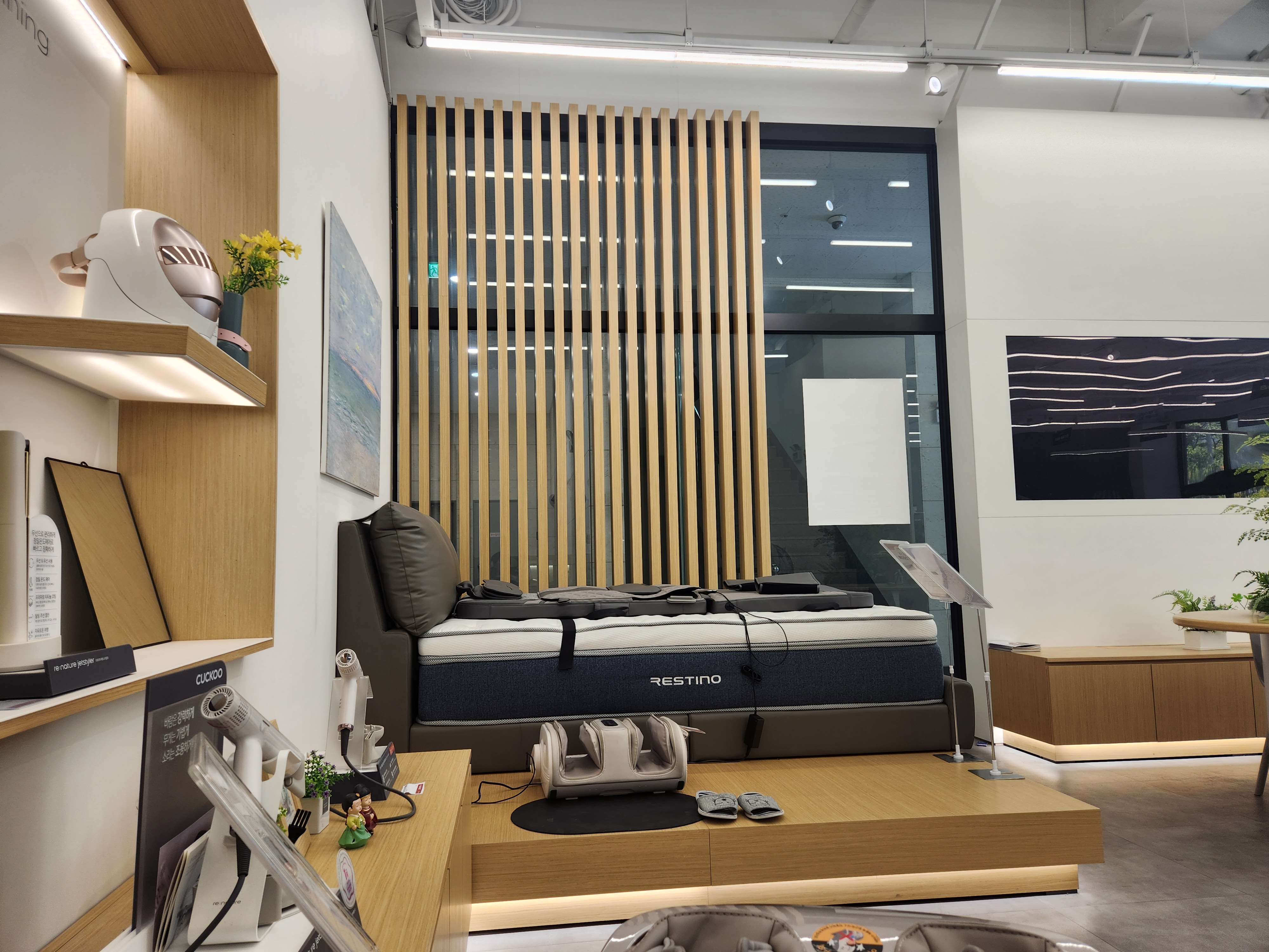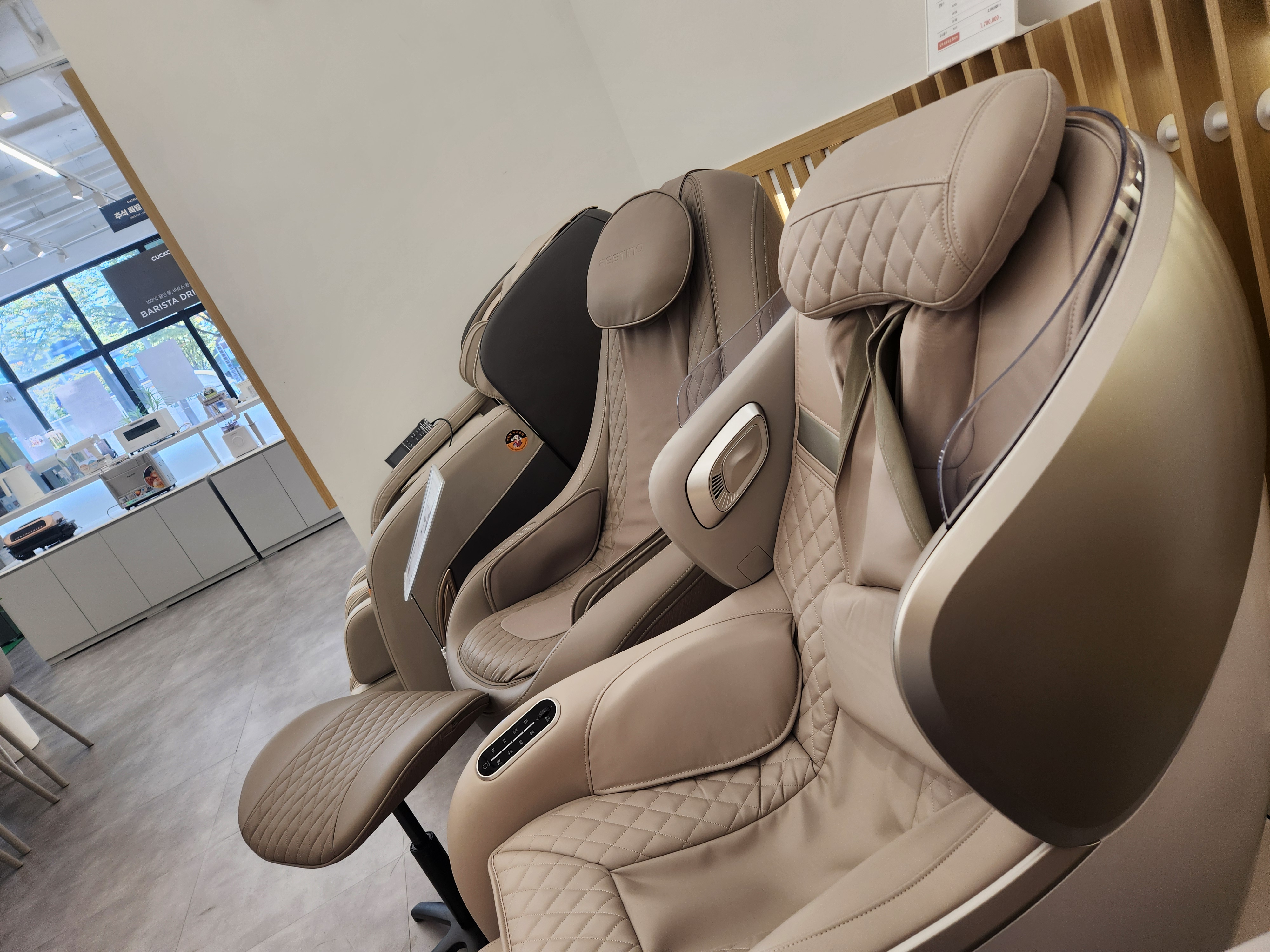 기다리는 동안 대기실에는 안마의자가 있어서 잠시 몸을 풀 수 있었는데, 이게 또 꽤 괜찮더라고요. 쿠쿠에서 나온 프리미엄 마사지 체어도 있었고, 정수기나 밥솥 신제품도 전시되어 있어서 구경하는 재미가 쏠쏠했습니다. 요즘은 단순히 수리만 하는 공간이 아니라, 체험형 쇼룸처럼 꾸며놓은 점이 인상적이었어요.