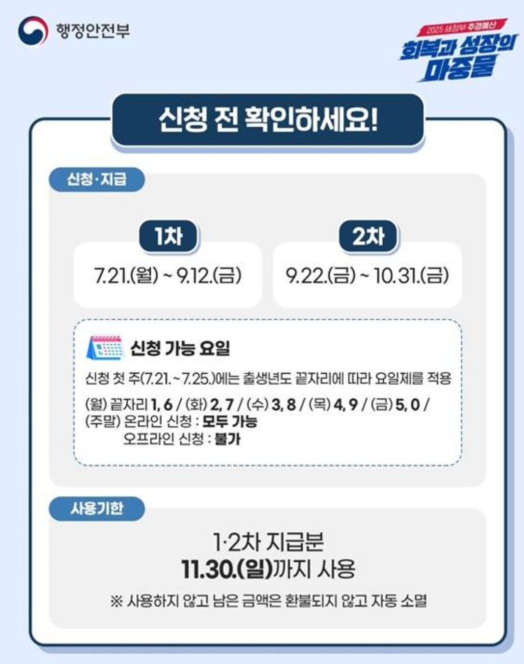 | 지급 시기 | 2025년 6~8월 | 2025년 9월 22일~10월 31일 |